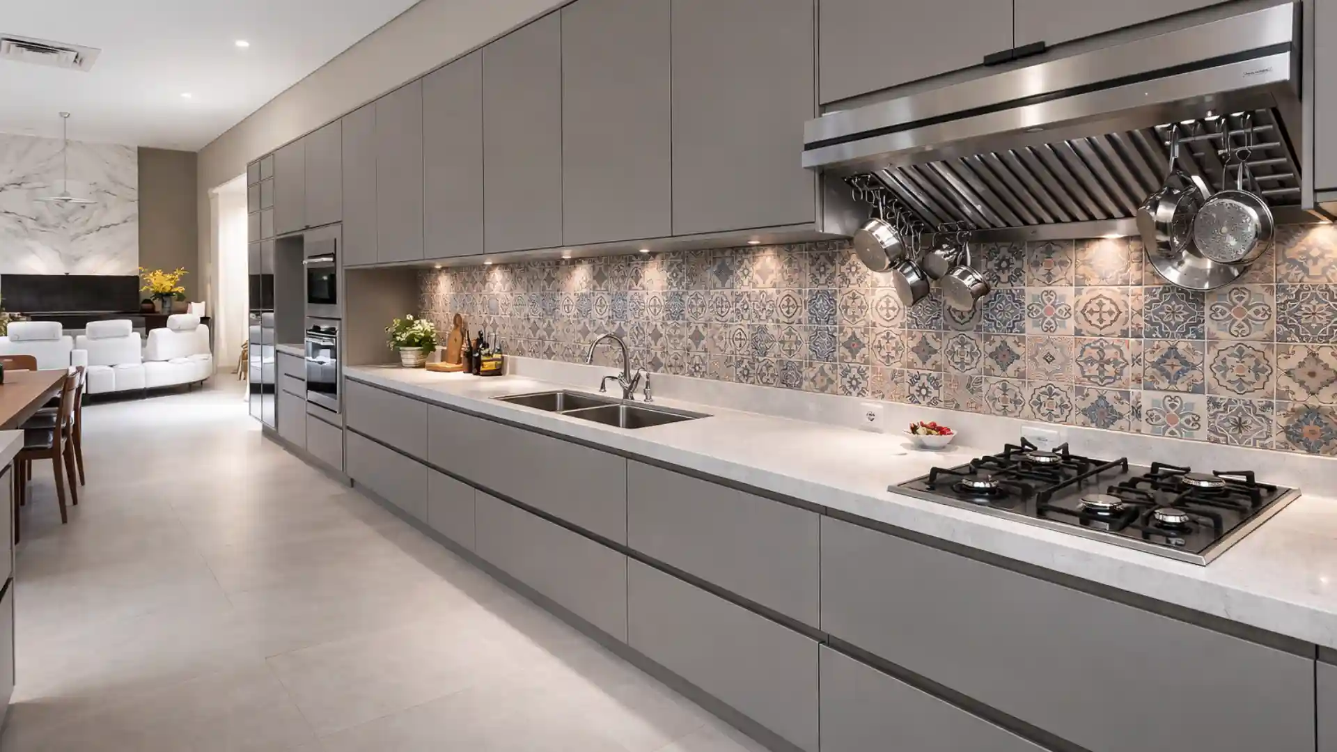 Projeto sob medida para encaixar com precisão e manter o visual premium da cozinha.